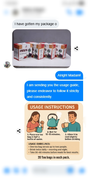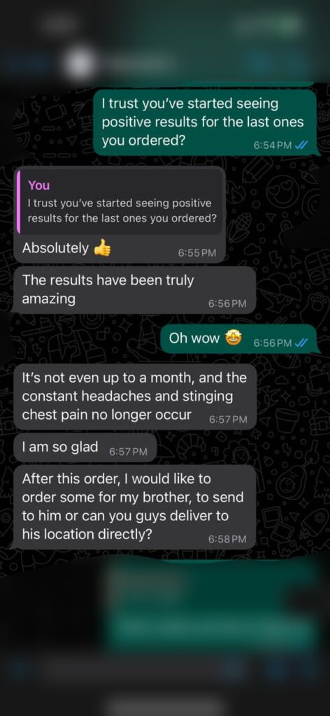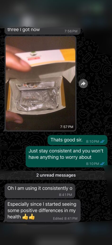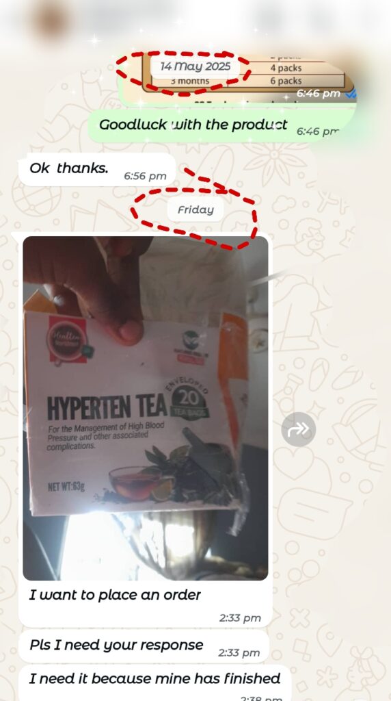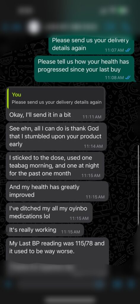 “Chinedu was dealing with seriously fluctuating blood pressure, he once had a dizzy episode and was rushed to the hop ital, they gave us drugs that we used for a long time but we got no real results. When we came across Hyperten Tea on facebook, I suggested that we should give it a try.